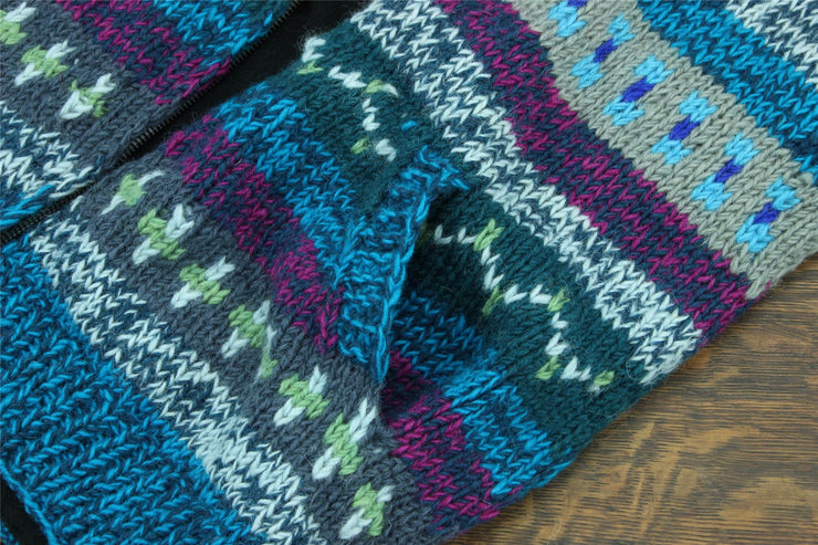 Hand Knitted Wool Hooded Jacket Cardigan 17 Blue Loudelephant